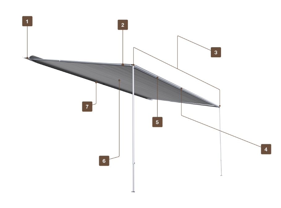 - Markisen er anbragt i en taske med anti-ridse tape, udstyret med en behagelig og praktisk selvsmørende lynlås.